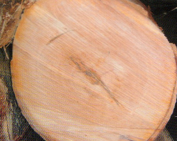 具光澤;略有蠟質(zhì)感;具有持續(xù)碘氣味。紋理直至略交錯(cuò);結(jié)構(gòu)細(xì)而勻;質(zhì)地中至重硬;強(qiáng)度高。加工容易,切面光滑;車旋、油漆、膠黏性能好;難于釘釘,須先鉆孔。耐腐。干燥困難,易端裂和面裂。氣干密度0.74 ~ 0.84 g/cm3。